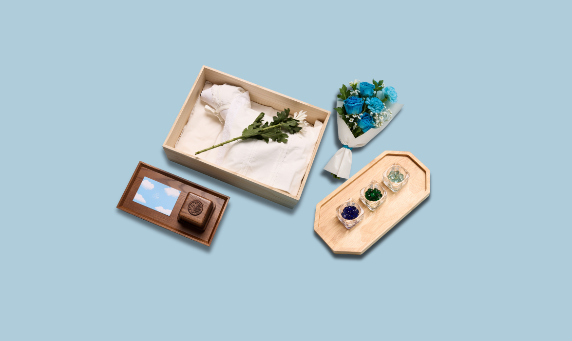 장례예식 · 개별 화장 · 수의(s) · 수의보(s) · 미니 꽃다발 · 메모아 스톤 · 메모아 스톤 공병 · 펫문 어메니티 포함